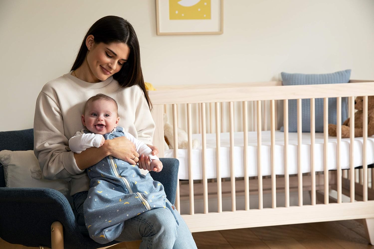 Ich bin total begeistert von diesem Baby-Schlafsack! Der Schlafsack hält die perfekte Temperatur, fühlt sich super weich an und gibt mir als Mama ein gutes Gefühl, weil ich weiß, dass mein Baby sicher eingepackt ist.